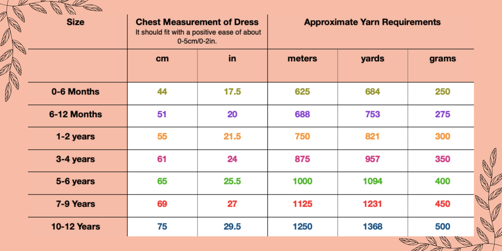 Sizes 0-6months, 6-12 months, 1-2 years, 3-4 years, 5-6 years, 7-9 years & 10-12 years.